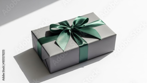 Elegant silver gift box with lush satin ribbon tied in a neat bow