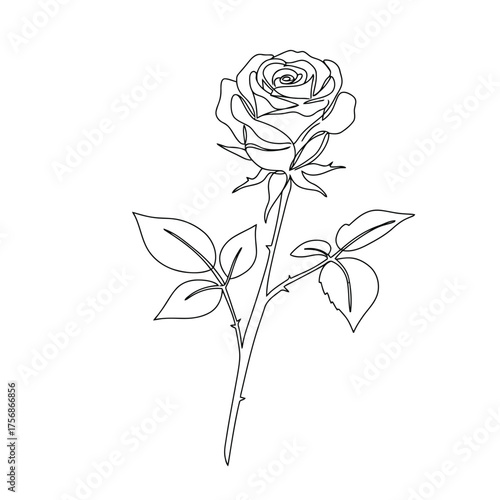 Elegant single rose flower with leaves and thorns silhouette