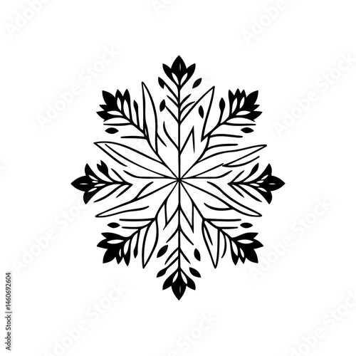 Elegant snowflake illustration, minimalist artistic design with unique linear details
