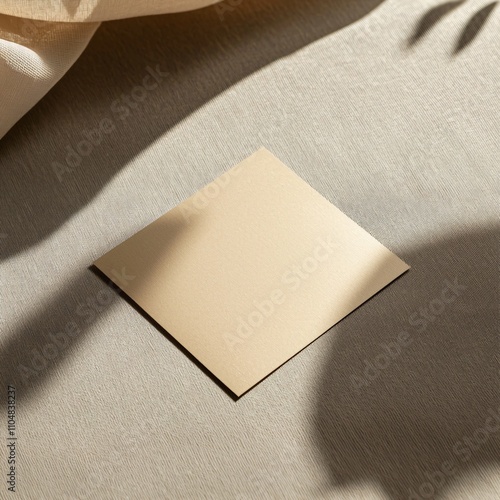 Elegant Square Invitation Card Mockup on Soft Fabric Minimalist Design Neutral Tones Studio Lighting Visual Appeal