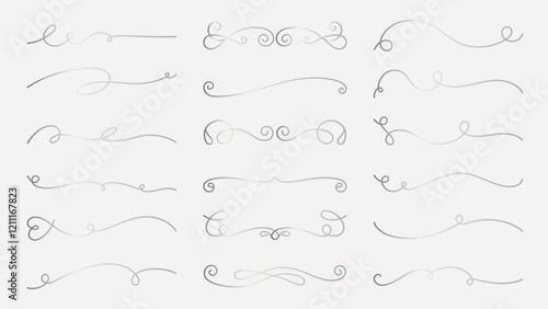 Elegant swirl dividers in various styles. Swirl designs add elegance. Perfect for invitations, cards, and decorative projects. Swirl dividers enhance any design. Hand drawn ornament vector set.