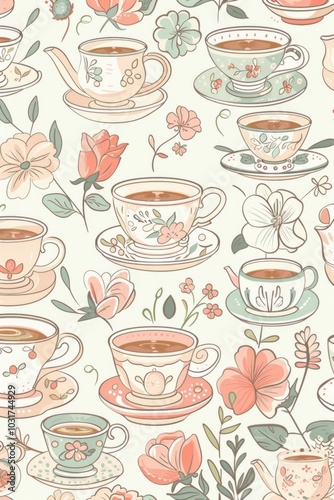 Elegant Tea Party Illustration with Floral Accents