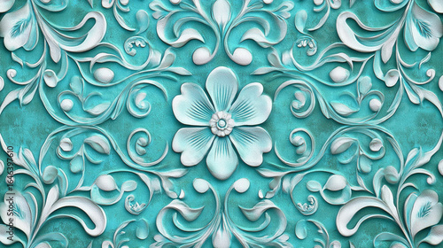 Elegant teal and white floral embossed design intricate pattern textured background
