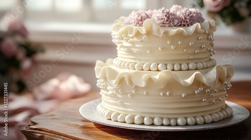 Elegant Two-Tiered Cake with Delicate Decorations