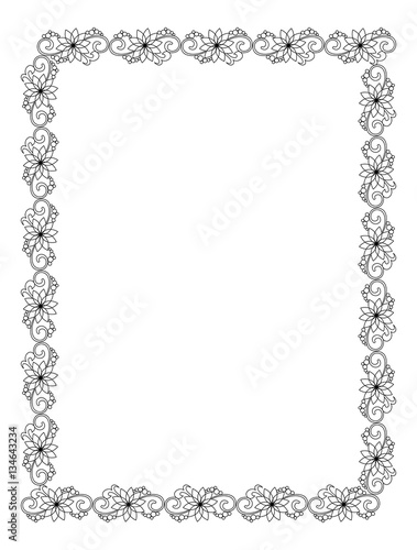 Elegant vertical frame with contours of flowers. Vector clip art.