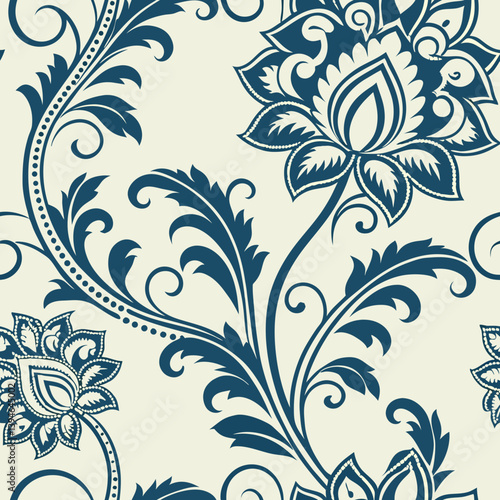 Elegant Vintage Floral Damask Seamless Pattern on Aqua Blue Background