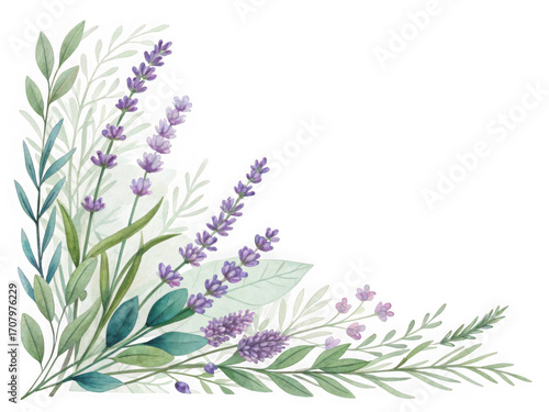 Elegant watercolor decorative floral corner design element with delicate flowers and leaves isolated on white background