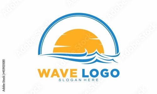 Elegant wave and sunset vector logo