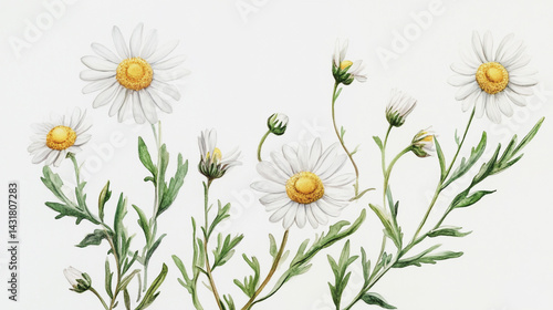 Elegant wedding invitation card background . Minimal hand painted watercolor Chamomile flowers texture template background. Design for wedding, vip cover, poster, rsvp moderncard.Valentine's Day