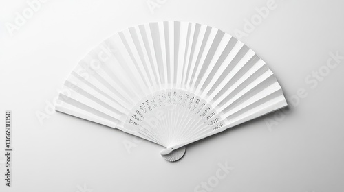 Elegant white fan displayed on a minimalist background, showcasing its intricate design and craftsmanship