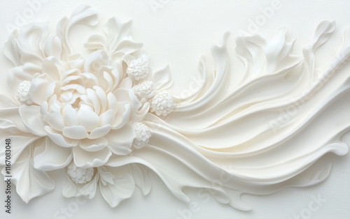 Elegant White Floral 3D Relief Wall Decor Intricate Carving Flower Pattern Home Decor