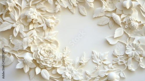 Elegant White Floral Relief Sculpture: A Delicate Masterpiece of 3D Floral Art