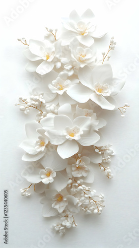 Elegant White Orchid 3D Illustration - Floral Wall Art Background