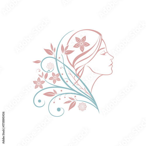 Elegant woman s profile adorned with delicate floral and leaf designs