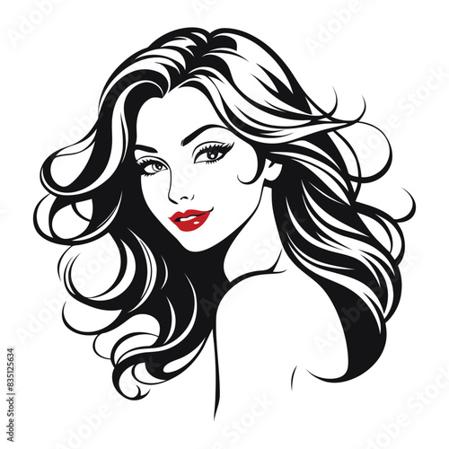 Elegant Woman Silhouette Illustration Flowing Hair Beauty Logo
