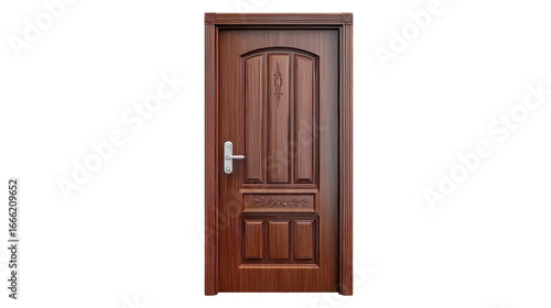 Elegant wooden door with detailed carvings and modern handle, perfect for interior design projects and home renovation ideas