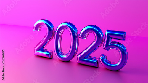 Elegante 3D-Darstellung der Zahl 2025 in verschiedenen Lilatönen, modernes Neujahrsmotiv mit Tiefenwirkung, festliche Grußkartengestaltung