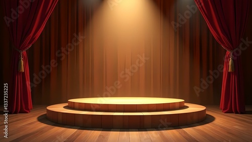 Elegantly lit stage with red curtains and circular platform for performances at a theater