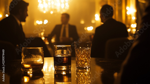 Elite gathering in a dimly lit lounge with drinks and rich ambiance