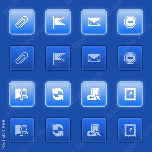 Email icons for web on blue buttons.