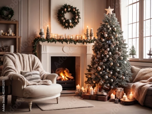 Embrace the warmth of a Cozy Christmas Living Room, complete with a crackling fireplace and enchanting festive décor.
