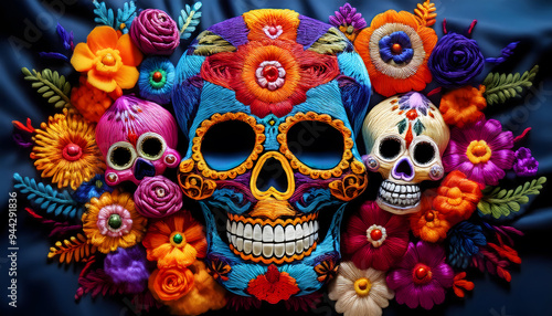 embroidery, schädel, maske, skull, dia, de, muertos, neu, close up, bunt, halloween, mexiko, fasching, vektor, kunst, abbildung, gesicht, tattoo, death, dekoration, symbol, nahtlos, rosales, pink, 3d
