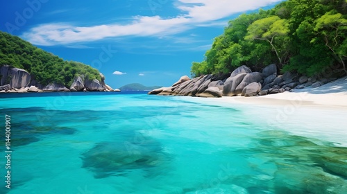 Emerald Allure of the Similan Islands A Captivating Seascape Showcasing Nature s Sublime Beauty in a Tropical Paradise The crystal clear turquoise waters and lush