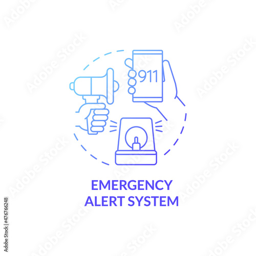 Emergency alert system blue gradient concept icon. Urgent situation message abstract idea thin line illustration. Isolated outline drawing. Roboto-Medium, Myriad Pro-Bold fonts used