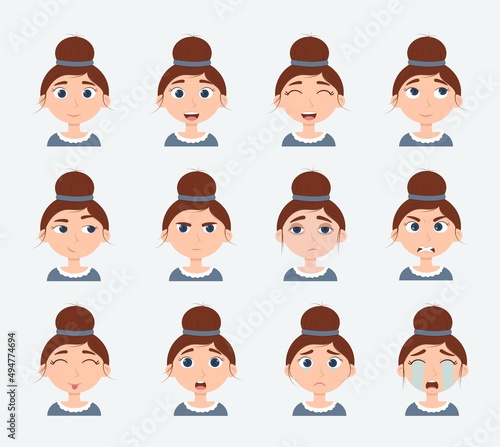 Emotion victorian girl character vector illustration