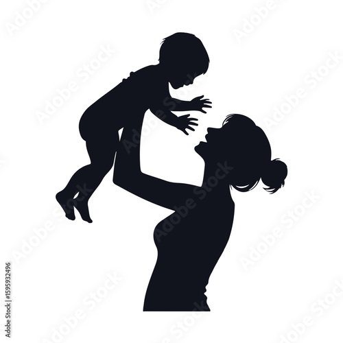 Emotional black silhouette of a mother holding her child closely, touching foreheads, love and bonding concept on white background