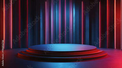 Empty 3D Rendering Promotion Stage for Product Presentations. Digital Drawing Mockup Design.