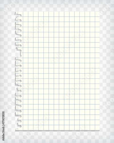 Empty checkered note book page with torn edge