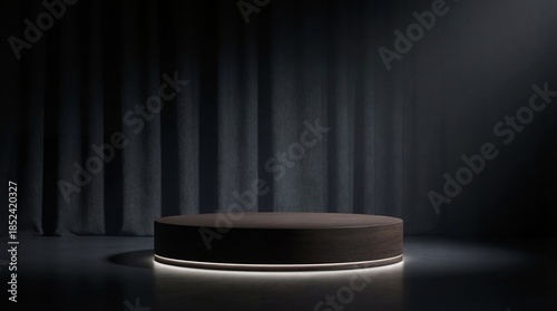 Empty circular podium with glowing edge isolated on white background