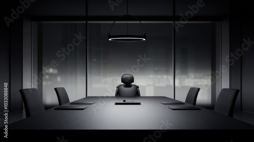 Empty Conference Room with a Single Chair at the Head of the Table