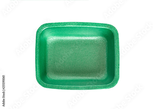 Empty green plastic tray isolated on white