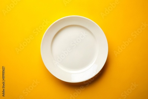 Empty plate on a yellow background with ample copy space, perfect for food, restaurant, or culinary advertisements and promotional materials.