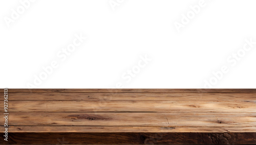 Empty wooden table top in warm brown tones, perfect for showcasing products or creating a rustic display,transparent background png file.