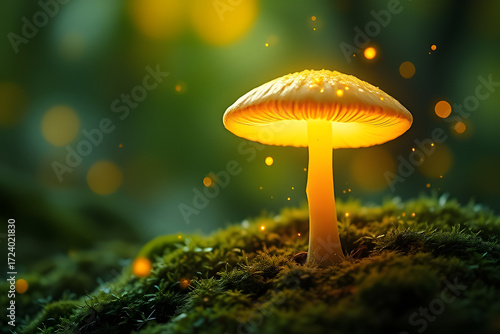 Enchanted Forest Glow: Luminous Mushroom Illuminates the Night