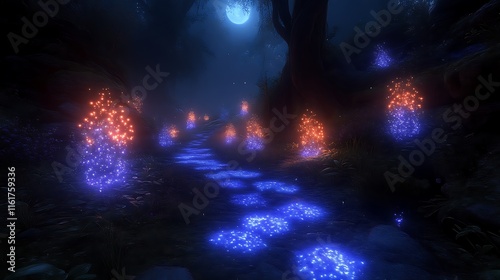 Enchanted Forest Path Illuminated By Glowing Plants