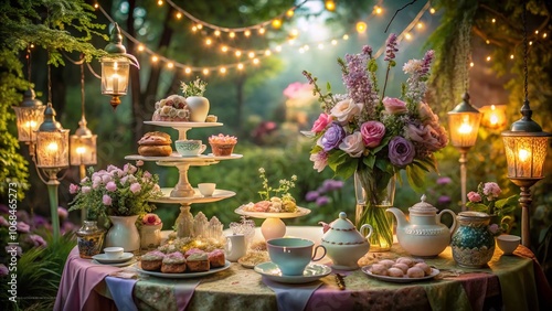 Enchanted Low Light Tea Party in a Serene Whimsical Wonderland with Twinkling Lights and Dreamy Decor
