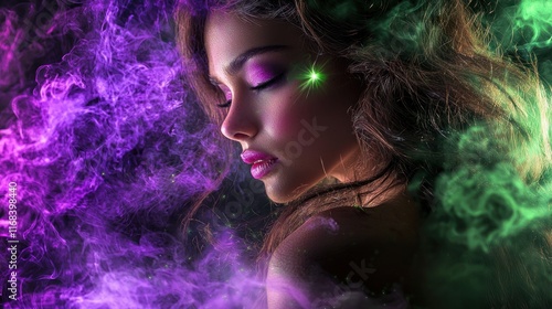Enchanted Woman: A Mystical Portrait in Purple and Green Haze
