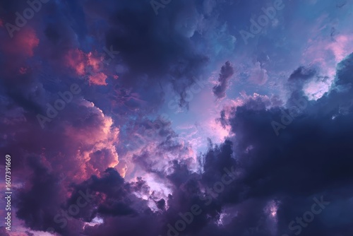 Enchanting night sky featuring rich purple and blue clouds ideal for whimsical designs and tranquil backdrops
