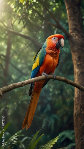 Enchanting Rainforest Landscape with Orchids, Macaws, and Cascading Waterfalls