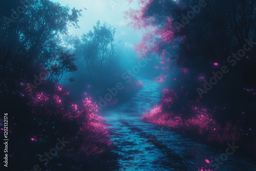 Enchanting Stream Flows Through A Mystical Forest At Night