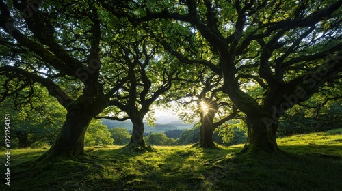 Enchanting twilight forest scene ancient woodland gigapixel image ethereal glow natural environment captivating viewpoint