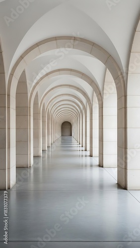 Endless Arched Corridor with Repeating Vaulted Ceilings and Light Reflecting on the Floor architecture