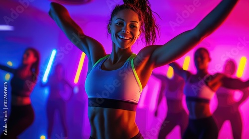 Energetic Fitness Class Under Neon Lights: A Vibrant Workout