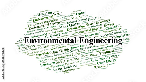Environmental Engineering Word Cloud. Essential Topics In Sustainability And Pollution Control