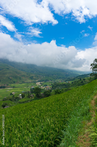 Epic view on rice terraces and mountain village
