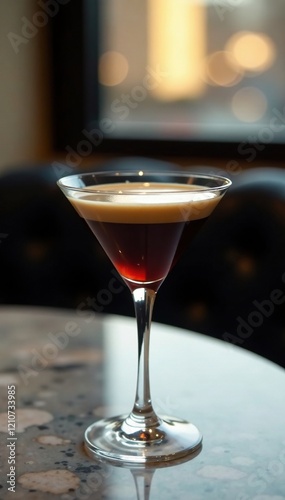Espresso martini cocktail in a luxurious glass on a marble table, table, coffee, elegant
